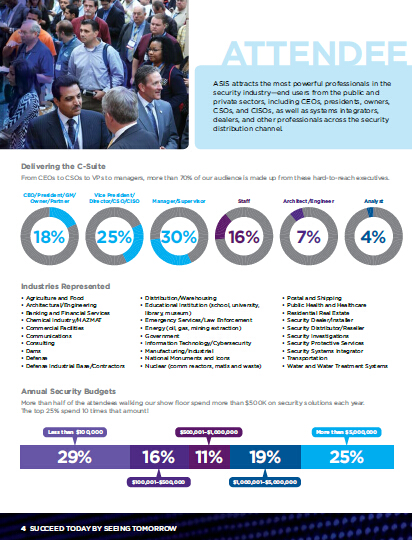 ASIS美国安防行业标准委员会,成立于1955年。ASIS更专注于安防行业的利益范畴,通过不断发展行业研讨会、建立行业标准,集合与安防领域相关的专业行业,把效益和产能最大优化组合。由ASIS美国安防行业标准委员会主办的“美国全美国际