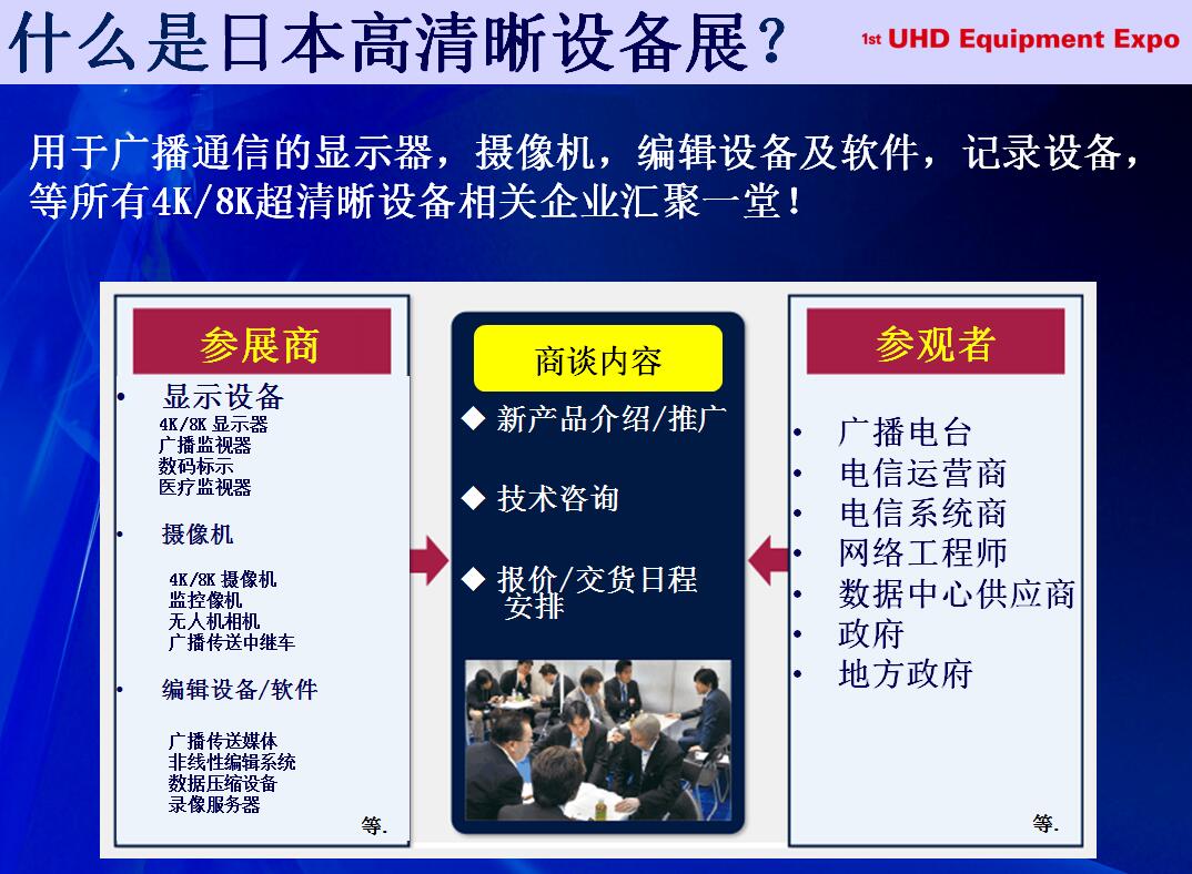 日本国际视频通讯技术展览会是日本当地首个关于高清视频成像技术的专业展览项目,展会将展出高清视频所需的影像成像设备及所需配件材料,同时还将展示影像传输系统,如有线和无线传输设备等。